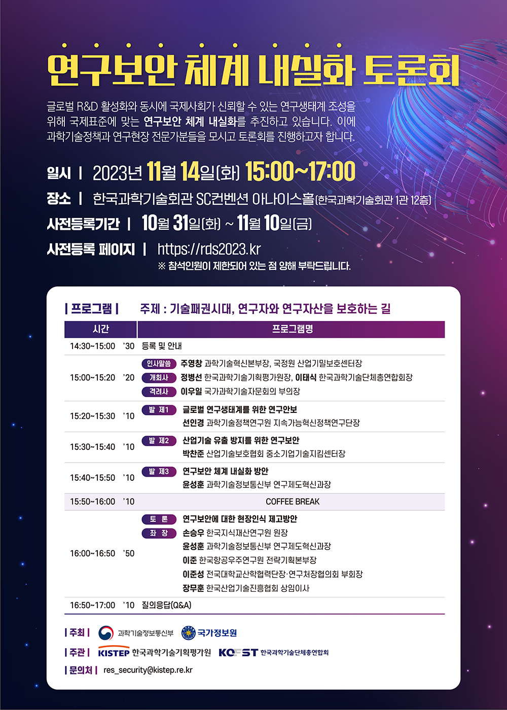 [과총] 연구보안 체계 내실화 토론회 개최 (마감일: 11월 10일)