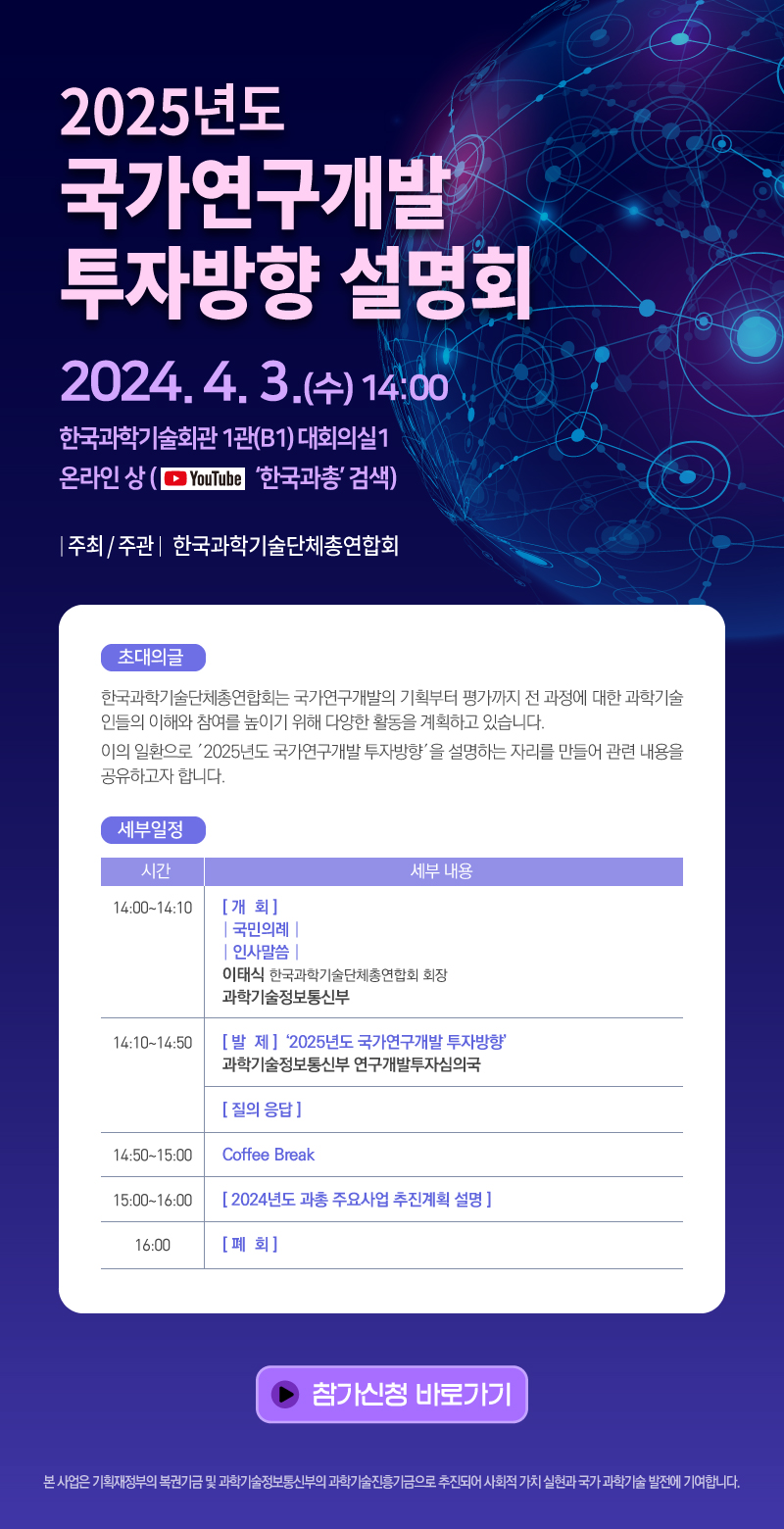 [과총] 2025년도 국가연구개발 투자방향 설명회 (행사일: 4월 3일)